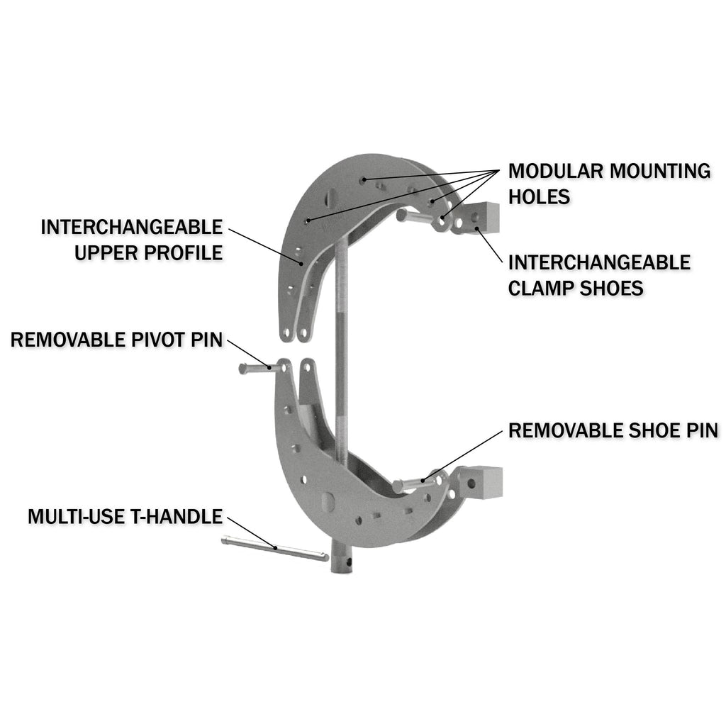 Removable shoes and extra mounting holes make this clamp ready for any job. Make your own custom shoes or upgrade it with future modular shoes. This is the first clamp that will become even better with time.
